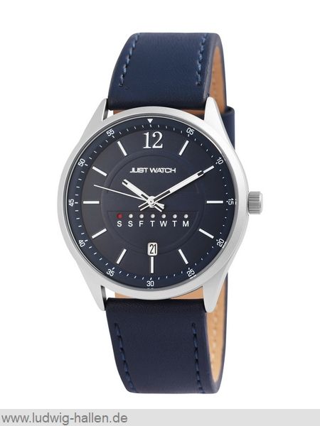 JUST WATCH JW10113-001 4049096855091 / Modell Aram, Metallgehäuse mit verschraubtem Edelstahlboden (Durchmesser 42 mm, Höhe 9.6 mm), Mineralglas, Lederband mit Dornschließe (Breite 22 mm), Datum, Wochentag, 3 ATM druckgeprüft, Gesamtlänge 24 cm / 49.95 €uro