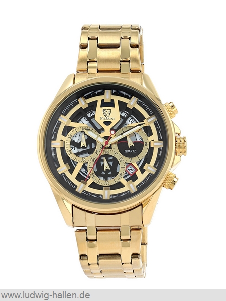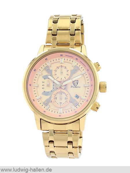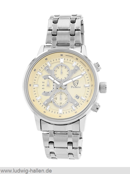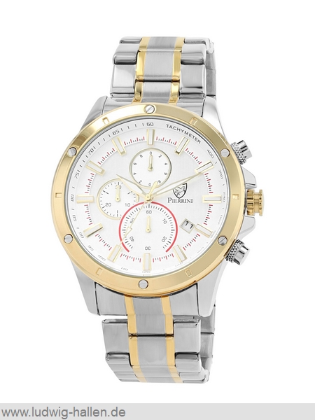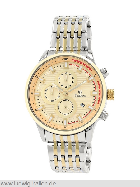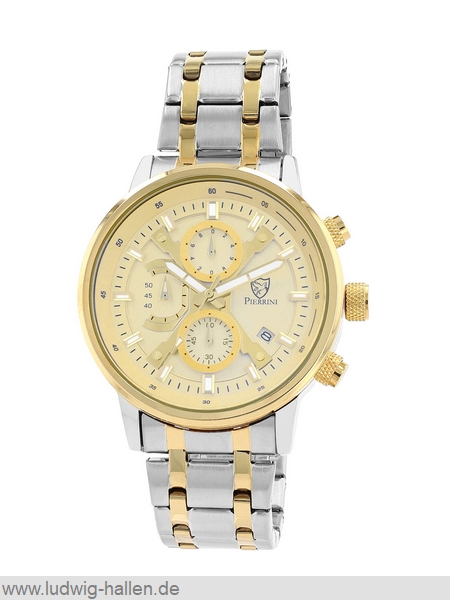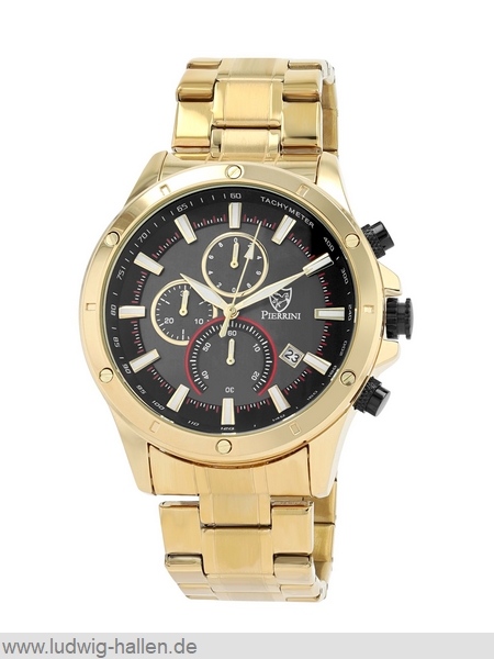 PIERRINI 2800123-002 4068532057097 / Metallgehäuse ionenplattiert mit Edelstahlboden (Durchmesser 44 mm, Höhe 11 mm), Mineralglas, Edelstahlband ionenplattiert mit Butterfly-Schließe (Breite 22 mm), Chronograph (Zwischenzeit), Leuchtzeiger und -indizes, Datum, 3 bar wasserdicht / 59.- €uro
