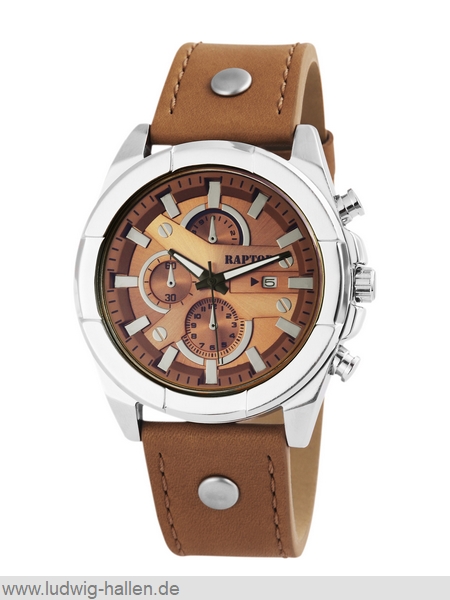RAPTOR RA20026-001 4049096578174 / Modell Rivet, Metallgehäuse mit Edelstahlboden (Durchmesser 48 mm, Höhe 12 mm), Mineralglas, Lederband mit Dornschließe (Breite 24 mm), Chronolook, Datum, Gesamtlänge 25.5 cm / 59.95 €uro