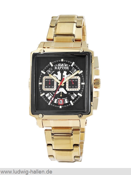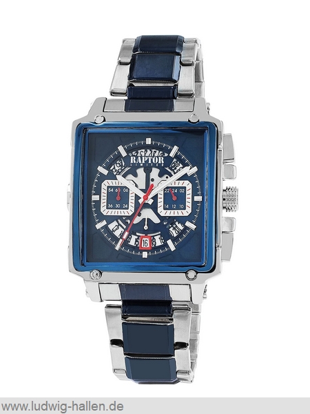 RAPTOR RA20397-005 4068532059800 / Limited-Serie, Modell Oscar, Metallgehäuse mit Edelstahlboden (Breite 47 mm, Länge 56 mm, Höhe 14 mm), gewölbtes Mineralglas, Edelstahlband mit Faltschließe und Sicherheitsdrücker (Breite 24 mm), 24 Stundenanzeige, Datum, Leuchtzeiger, Chronograph, 3 bar wasserdicht, Gesamtlänge 24 cm / 79.95 €uro