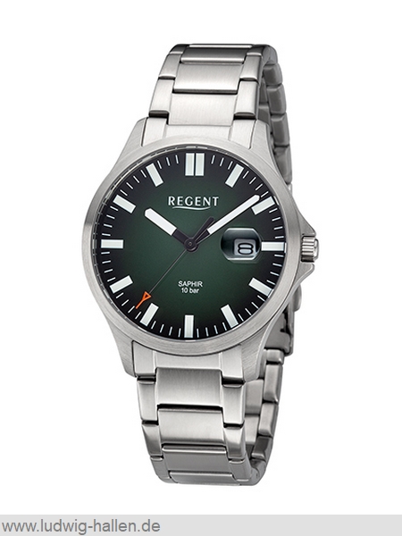 REGENT MEN F-1195 1873-44-94 4050597191076 / Edelstahlgehäuse (Durchmesser 40 mm, Höhe 8.2 mm), Mineralglas, Edelstahlband mit Faltschließe und Sicherheitsbügel, Leuchtzeiger und -indizes, Datum, 5 Bar wasserdicht / 99.- €uro