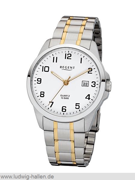REGENT MEN F-1014 1840-41-99 4050597184191 / Edelstahlgehäuse (Durchmesser 39 mm, Höhe 10 mm), Mineralglas, Edelstahlband teilweise ionenplattiert gelb mit Faltschließe und Sicherheitsbügel, Leuchtzeiger, Datum, 10 Bar wasserdicht, verschraubter Gehäuseboden / 69.90 €uro