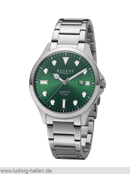 REGENT MEN F-1455 4050597603098 / Edelstahlgehäuse (Durchmesser 41 mm, Höhe 8.5 mm), Saphirglas, Edelstahlband mit Faltschließe und Sicherheitsdrückern, Leuchtzeiger und -indizes, Datum, 10 Bar wasserdicht, verschraubter Gehäuseboden / 99.- €uro