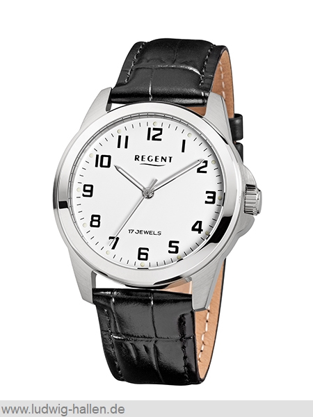 REGENT MEN F-1570 1970-44-19 4050597201744 / Handaufzugwerk, Edelstahlgehäuse (Durchmesser 39 mm, Höhe 9.6 mm), Mineralglas, Lederarmband mit Dornschließe (Breite 20 mm), 5 bar wasserdicht, Gesamtlänge beträgt 24 cm / 99.- €uro